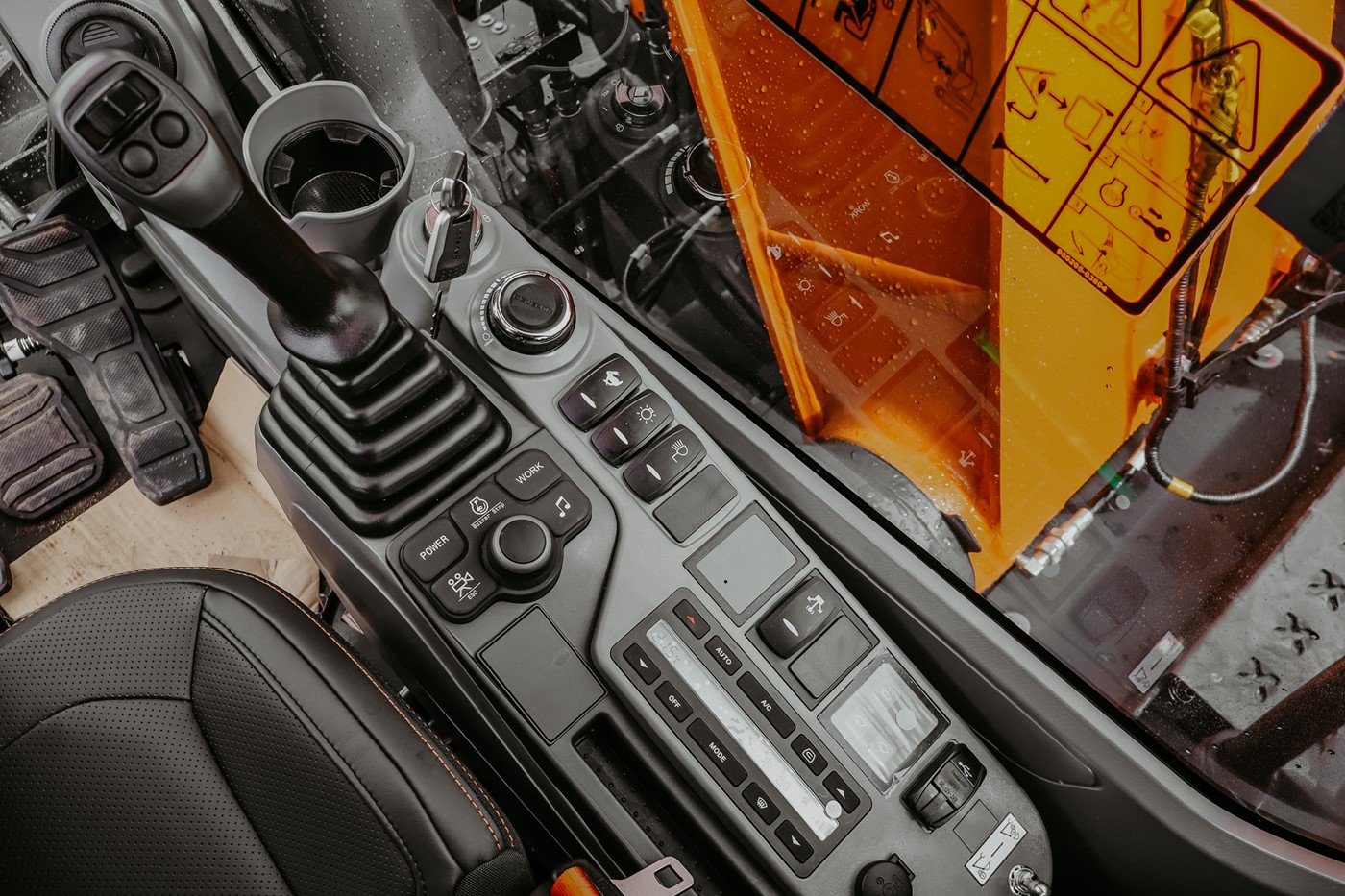 The spacious low noise cab is engineered for operator comfort and efficiency. Large glass surfaces provide excellent visibility supported by a rear view camera for improved awareness when reversing or manoeuvring. To further enhance operator safety the DX140LCR can be equipped with a 360 degree safety camera system which provides a complete surround view of the machine enabling safer operation in busy or restricted environments. The adjustable suspension seat ergonomic controls 7 inch display panel and multiple operating modes support long productive days on site.